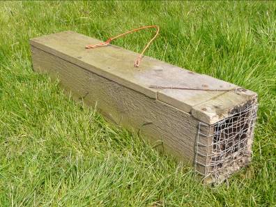See-saw traps are another simple type of box trap and are effective for rats, squirrels, mink and even recapturing ferrets. They require no bait but instead use the natural attraction which open ended tunnels have for most small predatory mammals. Although they may look a little rustic these are a very simple and effective tool.