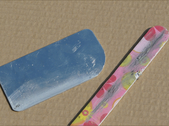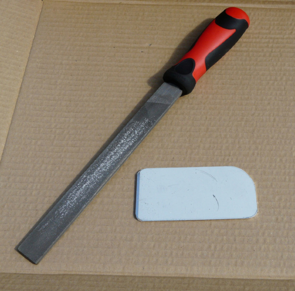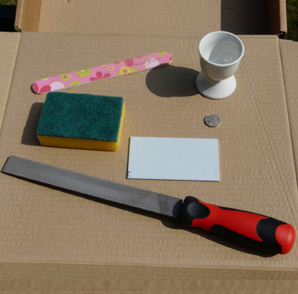 Here are the tools and equipment that you need: A suitable blank of aluminium or other material, a flat file, a nail file or emery board, a sponge kitchen scourer, an egg cup, a five pence piece and a pencil.