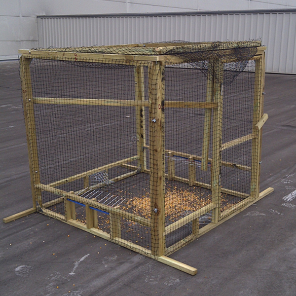 In 2011 we were engaged to make large pigeon traps on a commercial basis for one of the big national Pest Control firms. After a few trials we settled on a 4ft by 4ft design with 2 bobwire doors and 2 funnel doors. This dual approach gave the technicians the opportunity to chop and change according to what worked best at any given site.