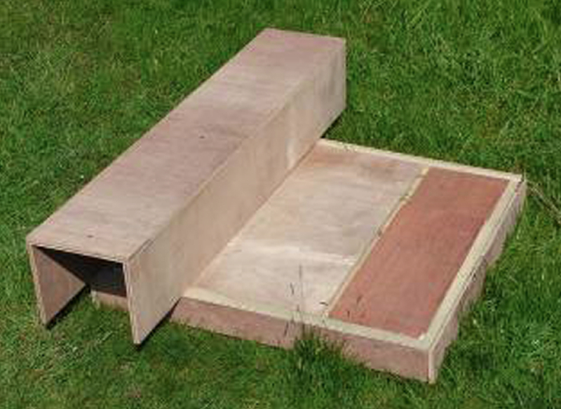 Placed across a fence line this trap creates an artificial route that rabbits will begin to use regularly—at which point the trap can be ’switched on’ and will take a large number of rabbits very quickly. It takes a bit of setting up but once in place will work reliably over a long period.