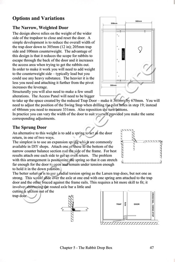 Hello, just to tell you that I recently bought your Trap Making Step by Step book and found the designs really good and easy to follow. We’ve already made the basic seesaw and have got the wood for a Larsen trap. Congratulations, as it is a really good book, well done! Thanks